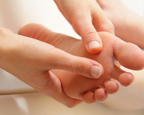 - Mit Fingern und Faust werden die Reflexzone mit Öl massiert.